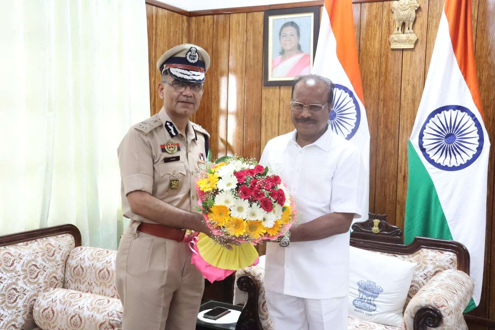 Shri Anurag, Director General of Police, Tripura made a courtesy call on the Hon'ble Governor of Tripura Shri Indra Sena Reddy Nallu at Raj Bhavan, Agartala.