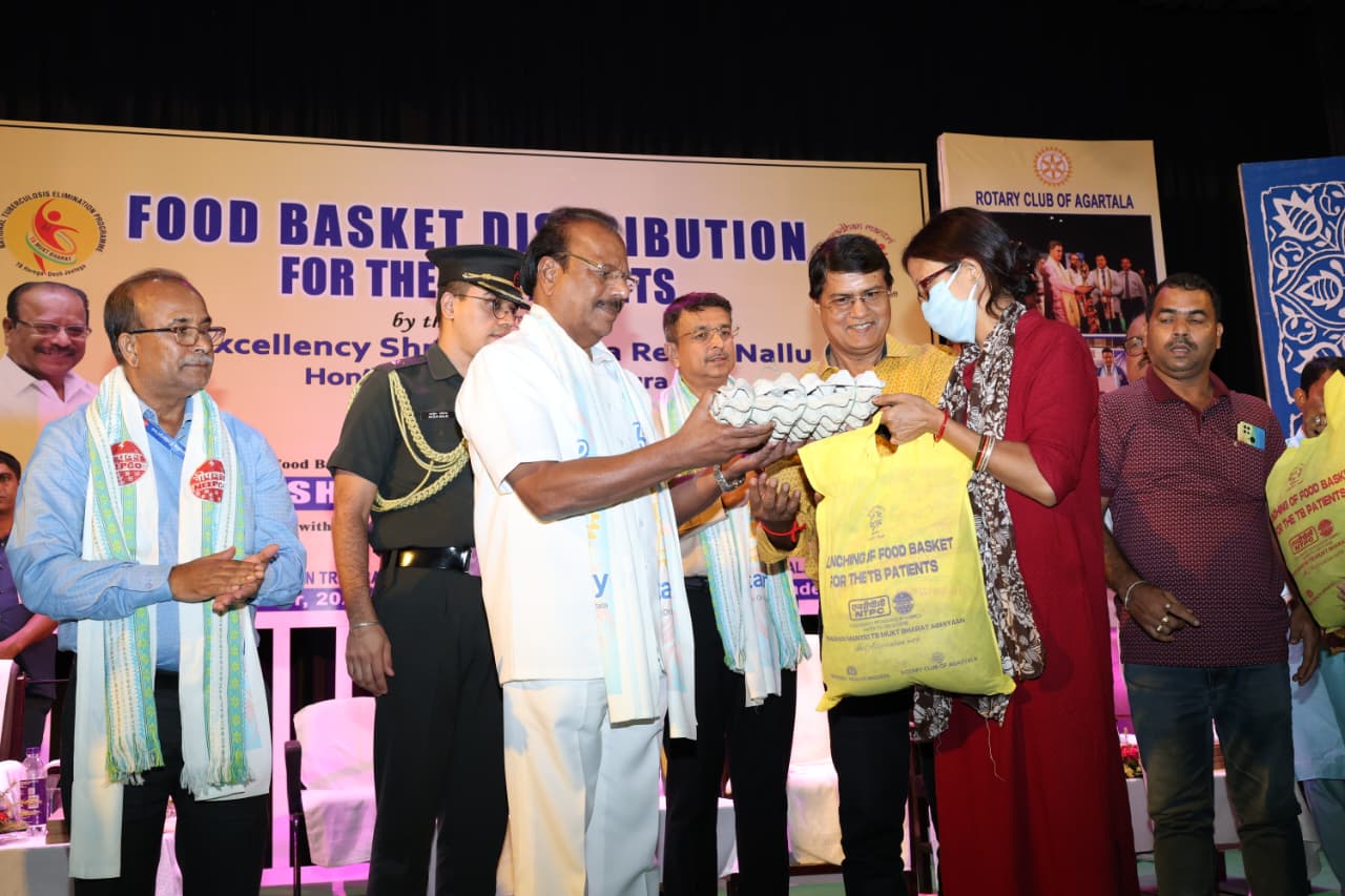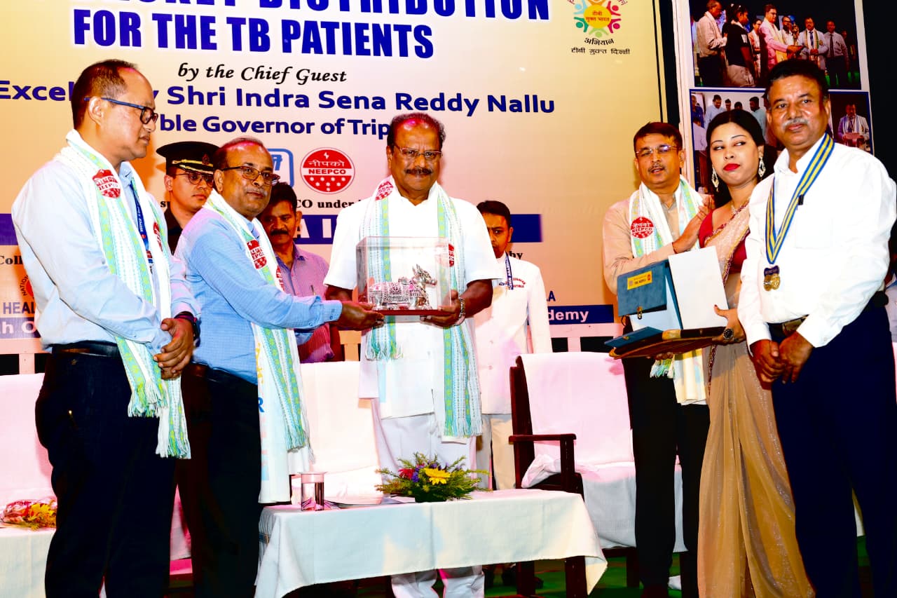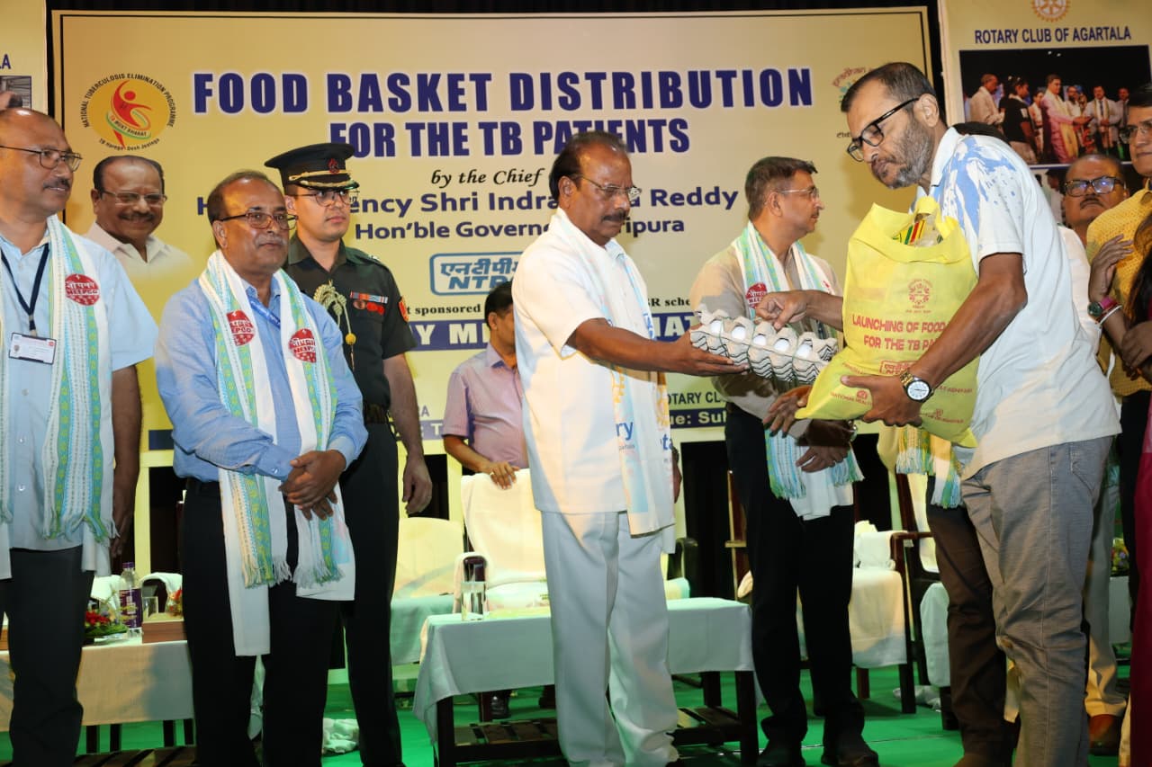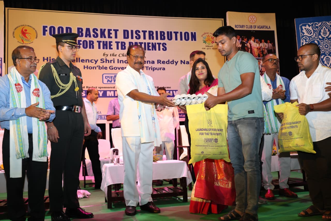 Hon'ble Governor Shri Indra Sena Reddy Nallu launched The Food Basket Distribution for TB patients under Pradhan Mantri TB Mukt Bharat Abhiyan’s – Nikshay Mitra Campaign at Sukanta Academy Auditorium, Agartala organised by NHM andTripura, Rotary Club, Aga
