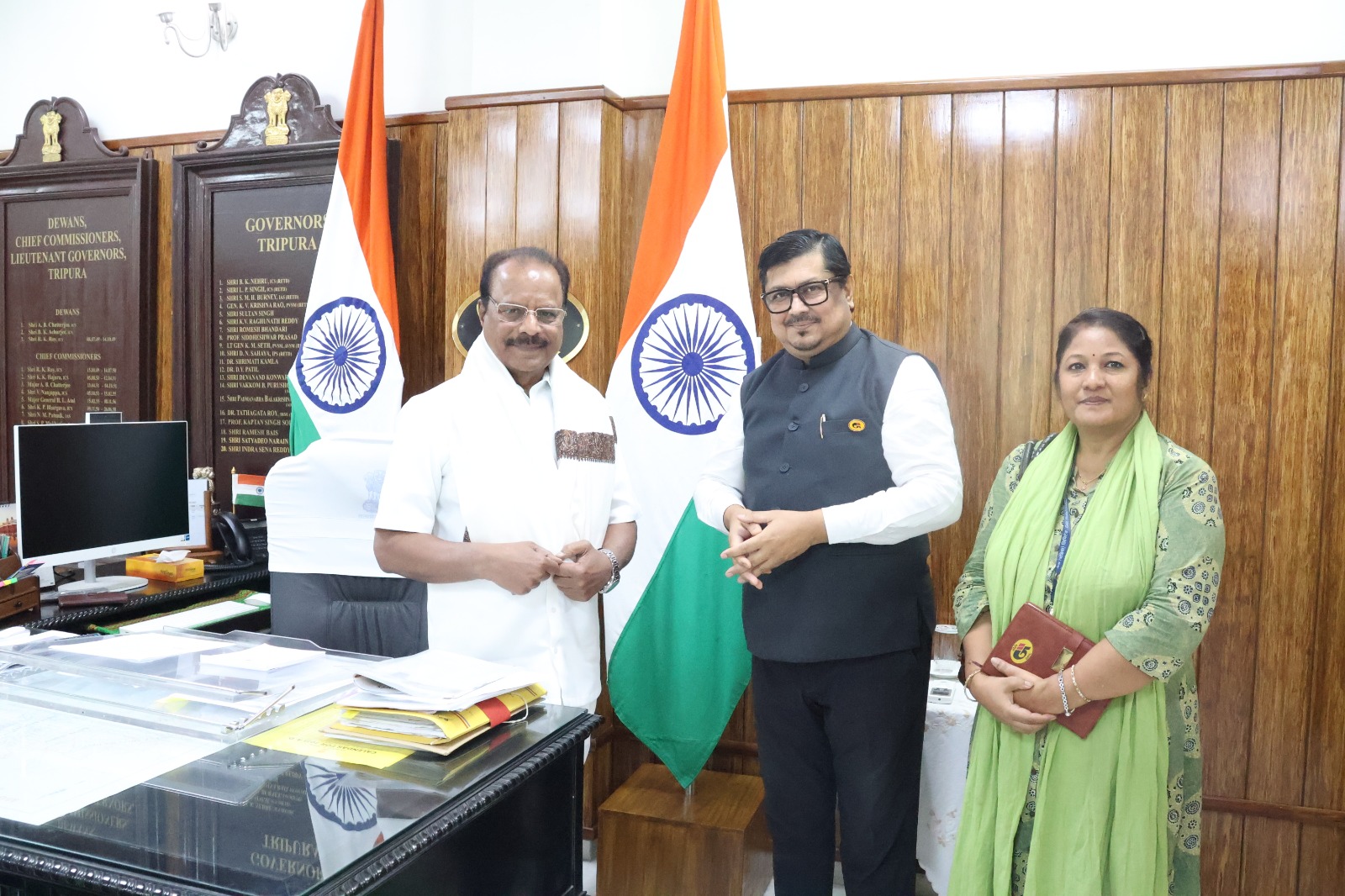 Shri P.K. Biswas, GM and Smt. Banani Debbarma, http://Deputy GM, GAIL called on the Hon'ble Governor of Tripura Shri Indra Sena Reddy Nallu at Raj Bhavan, Agartala.