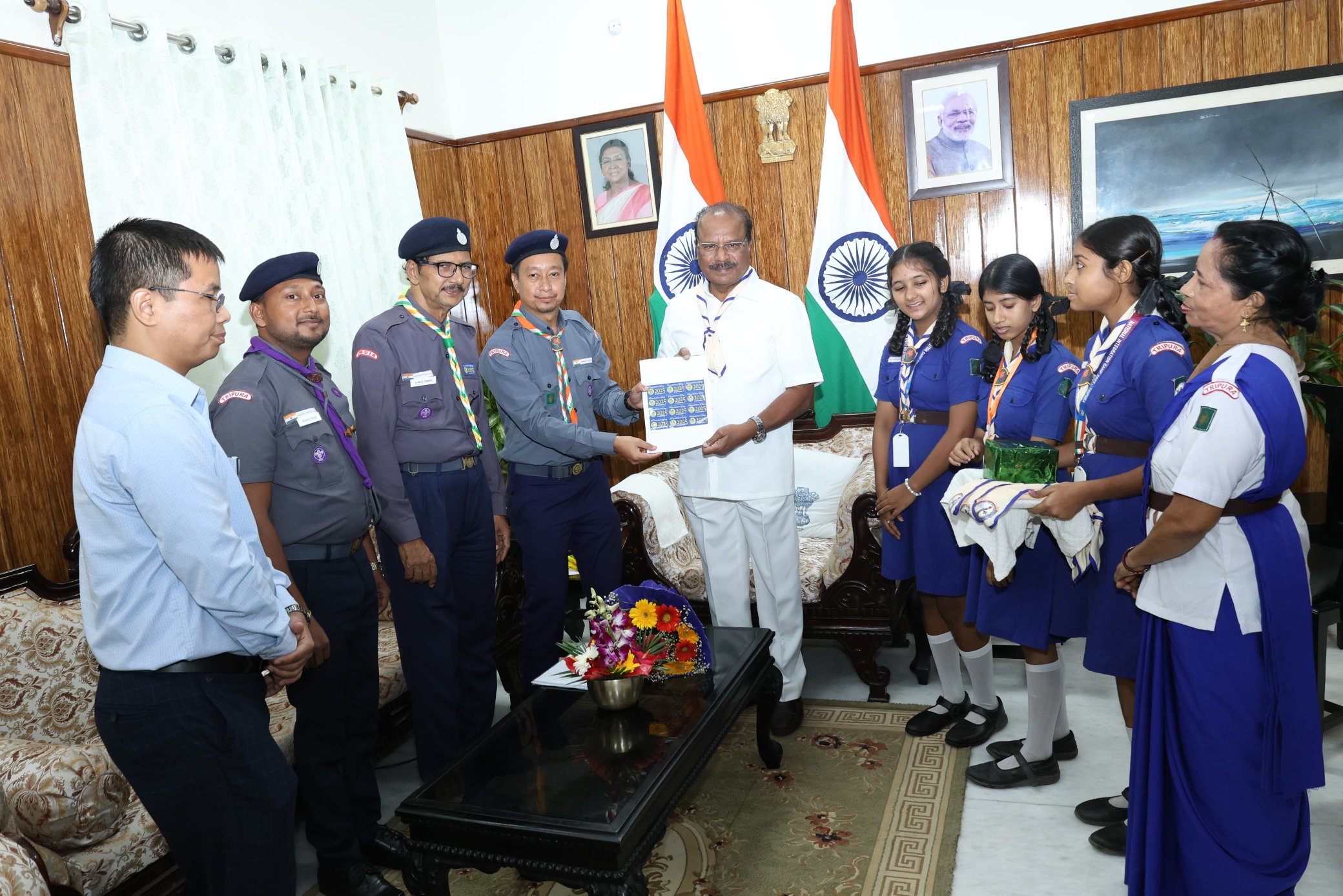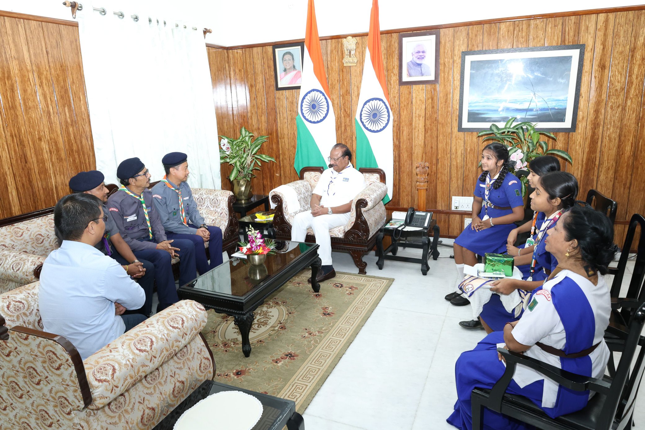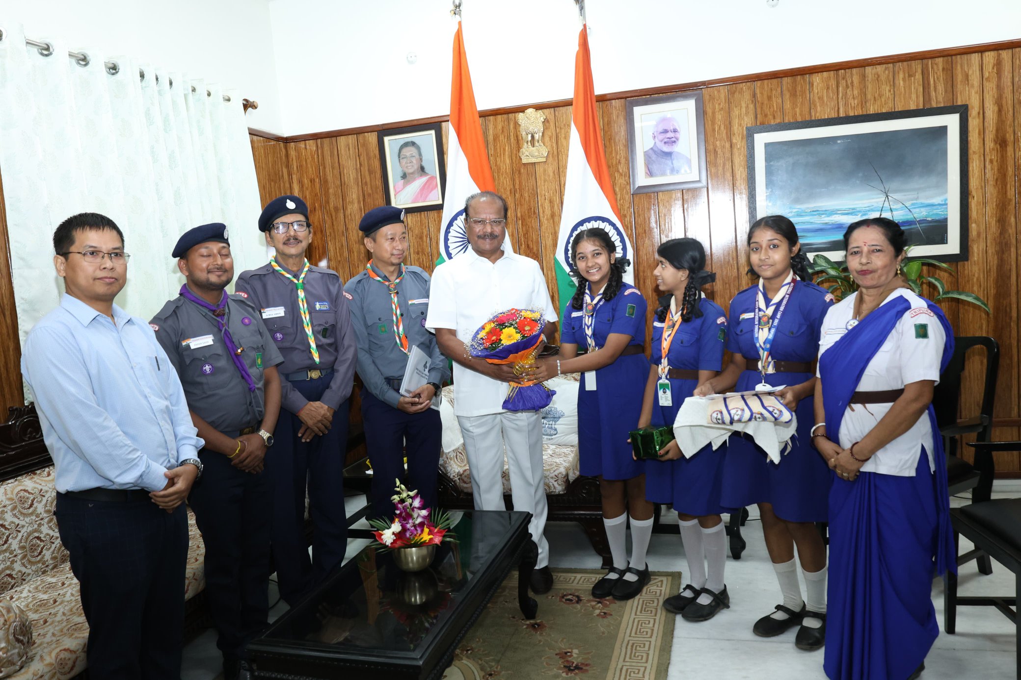 A delegation of Bharat Scouts and Guides met with the Hon'ble Governor of Tripura Shri Indra Sena Reddy Nallu at Raj Bhavan, Agartala .
